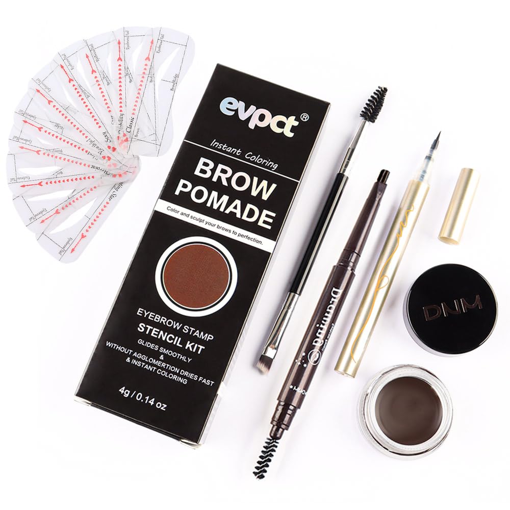 - ❤【How To Use 】Start off with a clean brow area and dip brush into brow pomade. Remember less is more to begin with.Carefully trace bottom of natural brow line to achieve desired shape and length,Choose the Eyebrow Stencils for assistance.You may dip your brush in pomade once more and begin with light strokes at the beginning of your brow to create the front part of your brow and continue until end of brow is reached.For a sharper brow, at arch of brow and with minimal product sharpen the tail en